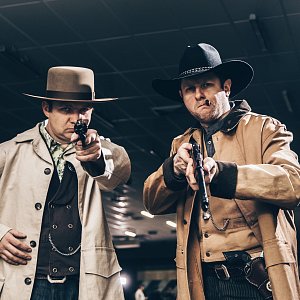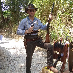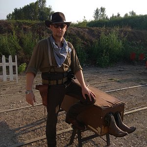 Спали мы в спальных мешках, топили печку. Настоящий Дикий Запад. Причем каждый, кто приезжал на соревнования, сразу должен был облачиться в ковбойский костюм и ходить в нем все три дня соревнований. Конечно, я от всего этого был в диком восторге. Оружие тоже носили все время. И в перерыве на обед я с тяжелыми кольтами на поясе шел обедать в кафе. Одним словом, это были три дня, которые пролетели как сон. Потом уже я дважды ездил чемпионат Чехии, а в августе прошлого года — на чемпионат Европы.