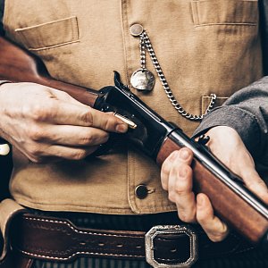 К тому же в тот момент у меня уже появилась возможность иметь ружья и винтовки для ковбойской стрельбы. И я стал более внимательно изучать CAS — cowboy action shooting, то есть главное направление в ковбойской стрельбе. Связи мои по этой теме стали расширяться, и в 2016 году один немец в Facebook пригласил меня на FirstFrozen — зимний чемпионат Германии по ковбойской стрельбе на черном порохе. Я стал собираться в дорогу, но уже буквально накануне вылета наткнулся на объявление о продаже старинного помпового винчестера 1897 года. Такая модель как раз используется для ковбойской стрельбы. И я все деньги спустил на поездку в Тамбов за этим ружьем. Так что в Германию мне удалось попасть лишь через год, и как раз перед поездкой я вступил в Международную ассоциацию ковбойской стрельбы — SASS (Single Action Shooting Society).