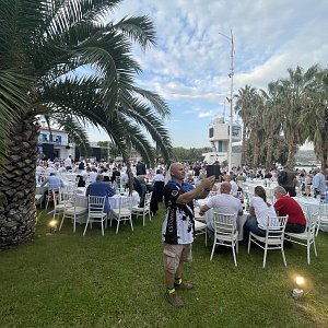 В соответствии с появившейся несколько лет назад традицией, Церемония началась с чествования самого старого участника матча и самого молодого. Самым старым, как и на Чемпионате Мира в Таиланде, оказался греческий Супер-Сеньер – восьмидесятитрехлетний Vasileios Parissis, а самой молодой – юниорша, девочка турчанка Ece Tokay. Спорт, конечно же, вне политики и все такое, однако существующие между Грецией и Турцией разногласия настолько сложны, что пожилой грек попытался всячески избежать совместного фото с девушкой, размахивающей турецким флагом. Однако организаторы настойчиво вручили деду греческий флаг и худо-бедно, но зафиксировали факт спортивной толерантности.