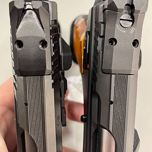 Рамка тоже претерпела небольшие изменения. Она стала граненой в угоду новой концепции, и потеряв свою массивную скругленную «бороду», обрела более легкую форму, сильно выиграв и с практической точки зрения. Так же рамка получила несколько новых вариантов отделки, окончательно избавившись от ужасной порошковой краски, которая не позволяла марке вырваться из сегмента бюджетного оружия, даже когда цена на CZ стала подбираться к €2000. Теперь можно выбрать цвет рамки и, поигравшись с цветом накладок, придать оружию еще больше индивидуальности.