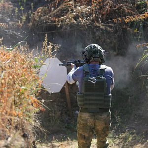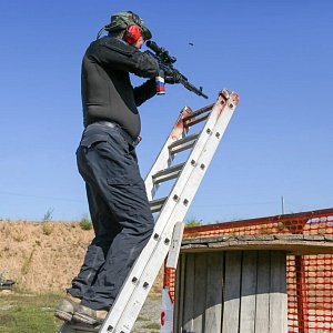 На этот раз стрелкам предстояло карабкаться по лестнице, штурмовать окопы, нырять в тоннель «Куппера», принимать различные неудобные положения и таскать на себе настоящую боевую разгрузку весом в десяток килограмм.