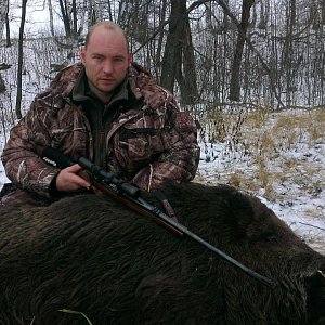 Г. Б.: Ездим в соседние охотхозяйства, ловим, покупаем у заводчиков породистых кабанов, привозим к себе и растим поголовье.