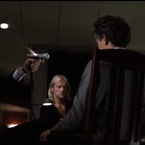 Утешает лишь то, что в дальнейшем, по ходу дела, глушитель больше не будет фигурировать в сценарии, и на данный киноляп, мы, пожалуй, закроем глаза. Больно уж хороша злодейская сцена, а пистолет с резьбой на стволе и без глушителя смотрелся бы совсем не так харизматично во всех прочих своих эпизодах, которых в фильме будет немало.