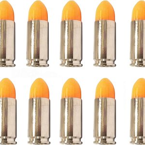 В качестве бонуса я бы хотел добавить в этот материал маленькое упоминание о такой интересной вещи, как «Маркерный патрон», или Simunition. По сути, «Симунишен» не является патроном типа Luger, и для использования его в пистолетах под 9×19 необходимо сменить ствол на соответствующий, однако в основном «Симунишен» используют именно со служебными пистолетами калибра 9×19, и нижняя часть его гильзы совершенно идентична люгеровской. «Симунишен» это нелетальный боеприпас, используемый для тренировочных огневых контактов, когда стрелять приходится в живого человека. Пороховой заряд в этом патроне достаточно сильный для того, чтобы исправно работала автоматика пистолета и имитация отдачи была полноценной. При этом небольшая пластиковая пулька с красителем получает такой импульс, что тренироваться с «Симунишен» рекомендуется только в плотной одежде и защите, иначе можно пострадать.