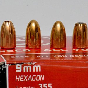 В общем, давайте вернемся назад к американцам и посмотрим на красивое. Патроны с аббревиатурой R.I.P. («покойся с миром»), на самом деле расшифровывающейся как Radically Invasive Projectile («радикально проникающий снаряд»), обладают очень интересной пулей. Выполненная из медного сплава, она представляет собой гофрированный фрезерованный конус с глухим отверстием спереди, благодаря чему, встретив препятствие, она по пропилам разбивается на множество осколков, которые по непредсказуемой траектории начинают собственное движение, создавая множественные раневые каналы. Снаряд негуманный, неточный, но красивый. Естественно, с таким набором качеств он востребован только в среде оружейных блогеров и шоуменов, но совершенно отвергнут силовиками и «самооборонщиками».