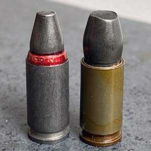 В общем, конечно, вопрос токсичности свинца и отравлений им в закрытых тирах стоял всегда, но значительно острее стоял вопрос рекошетирования боеприпасов, и еще в 1988 году американская компания Glaser Safety Slug, Inc. предложила патрон, снаряженный пулей из спрессованного металлического порошка, но в основном из соображений рикошетной безопасности, а не токсичной. В этом обзоре «Безопасная Болванка Инкорпорейтед» представлена другим своим продуктом, который стал результатом их поиска безопасного боеприпаса. Это антирикошетный патрон, пуля которого является, по сути, пустотелой оболочкой, заполненной мелкой дробью и закупоренной пробкой-наконечником для удержания дроби внутри и надежной подачи патрона из магазина. Патрон обладает практически той же баллистикой, что и обычный Luger со свинцовым сердечником, однако, встретив на пути твердое препятствие, типа камня или стального листа, пуля разрушится на множество легких фрагментов с низкой энергией, не дав практически никакого рикошета, способного навредить случайным людям.