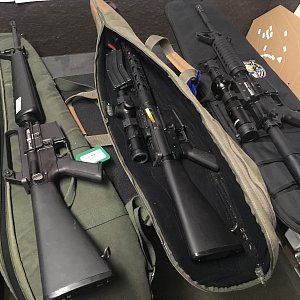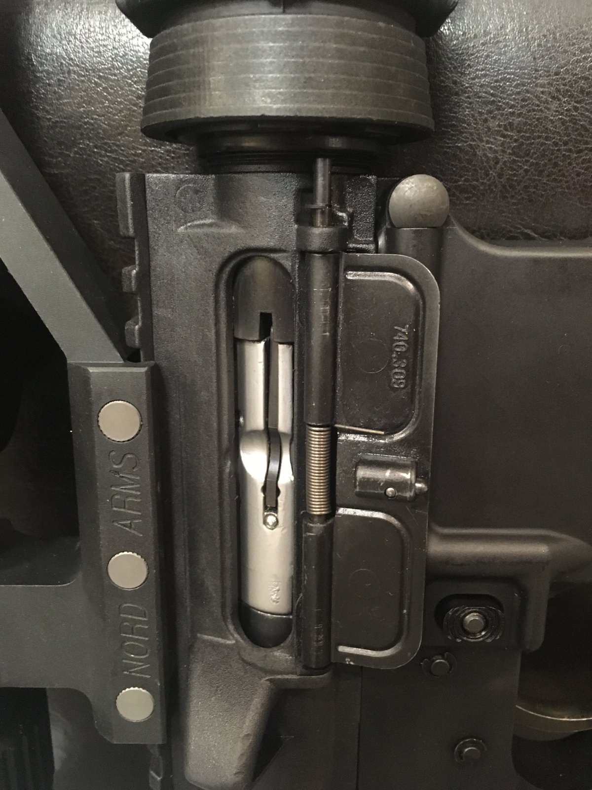 А вот адаптеры для винтовок AR-15 стали набирать популярность всего несколько лет назад с ростом цен на боеприпасы. Так как диаметр канала ствола винтовки под калибр .223 rem, или по военному 5,56×45 оказался идентичным с калибром 5,6×15,6 мм R, известным как .22LR, то для того чтобы начать тренироваться с винтовкой дешево и без износа дорогостоящего оружия, достаточно стало просто вложить в патронник винтовки вкладыш с соответствующим «мелкашке» патронником и поменять затворную группу с возвратной пружиной на соответствующие новому калибру детали. Ну, и конечно, поменять магазин. В итоге спортсмен мог начать тренироваться со своей привычной винтовкой даже в пистолетном тире и не заботиться о настреле, так как маломощный «мелкашечный» патрон уж точно не навредит ни нарезам, ни затворной группе.