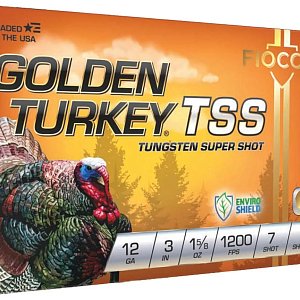 Заряды Golden Turkey TSS от Fiocchi обеспечивают высокую кучность, глубокое проникновение и дальнобойность при использовании вольфрамовой дроби 18 г/куб. см. Патроны 12-го калибра длиной 7,62 см выпускаются с дробью № 7 или № 9. Дульная скорость составляет 373,3 м/с. В ружьях 20-го калибра используется дробь № 9. Дульная скорость составляет 373,3 м/с. Для патронов калибра .410 также используется дробь № 9. Дульная скорость — 335,2 м/с. Все они поставляются в коробках по пять штук.
