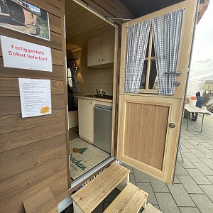Далее расположилась стоянка с полноценными домами на колесах, оборудованными двумя спальнями, кухней, санузлом и гостиной. Описывать их нет особого смысла, так как в отличие от бюджетных образцов, демонстрирующих чудеса комфорта при исключительном минимализме, эти домики уже не сильно претендуют на участие в спартанском досуге и бросании вызовов природе. Они, скорее, для праздно путешествующих по европейским дорогам отпускников, чем для охотников или любителей нетронутой природы. Подобный выбор даже близко не претендует на желание сэкономить, а даже наоборот. Аренда такого дома без учета топлива и расходов на кемперные стоянки в два и даже три раза превышает стоимость номера в приличном отеле или кемпинге. А его цена при покупке в собственность сопоставима с покупкой приличной квартиры в той глуши, куда предполагается ездить на таких штуковинах. Тем не менее представленный на выставке уровень развития этого рынка говорит о том, что я, вероятно, многого не понимаю в подобном виде отдыха.