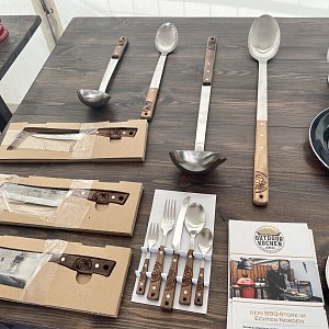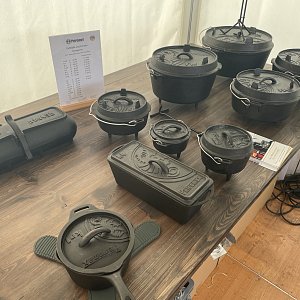 Так же рядом с грилями, очень широко оказались представлены всякие инструменты и посуда для готовки. Щипцы, лопатки, щётки, кисточки для масла и соусов, мясницкие тесаки и вилки для стейков.