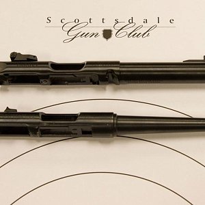 После этого верхний ресивер со стволом можно отвести от рамки рукоятки. В этот момент можно извлечь затвор из ствольной коробки. Сборка производится в обратном порядке.