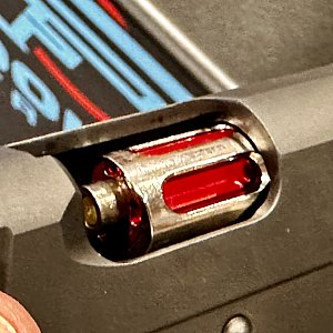 В момент, когда вы спустите курок, ударник наколет не капсюль патрона, а клапан, который выпустив немного газа под давлением, активирует поршень, инициирующий работу затвора и очень правдоподобно имитирующий отдачу пистолета. При этом лазерная насадка в момент «выстрела», укажет точку «попадания».