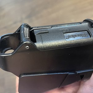 Ну и раз уж мы так или иначе, но все же скатились до обсуждения минусов замечательной UpLula, то справедливости ради следует упомянуть и самый главный в моих глазах минус — транспортировочный стопор. Маленькую защелку, которая позволяет на 20 % уменьшить и так не великий размер «заряжалки» для перевозки. Я, конечно, понимаю, что, возможно, многим аккуратистам эта опция покажется весьма нелишней, но как активный пользователь UpLula я авторитетно заявляю, что все возможные неудобства, которых вы избегаете, транспортируя «заряжалку» в сложенном виде, разбиваются в пух и прах одним единственным эпизодом, когда вам надо быстро зарядить магазин, а UpLula встает на защелку и блокируется. Минус не великий, но есть. И лично я просто отламываю этот фиксатор при покупке очередной «заряжалки». Кстати, я не слышал ни разу о том, чтобы UpLula сломалась. Их обычно теряют или их случайно уносят ваши товарищи. Но если девайсы подписывать, то они всегда возвращаются назад.