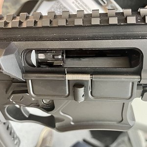 Парни Сестрорецкого оружейного завода, по сути, в обычной классической АР-ке просто заблокировали возможность присоединить магазин и добавили механизм постановки затвора на затворную задержку при каждом откате, позволяя стрелку забрасывать по одному патрону в окно экстракции после каждого выстрела. При этом газовая система осталась неизмененной, и автоматика исправно выбрасывает стрелянную гильзу в конце каждого рабочего цикла. Парни очень круто переработали нижний ресивер винтовки и смогли изумительнейшим образом реализовать педаль сброса затворной задержки, расположив ее под указательным пальцем, что совершенно драматически повышает скорость заряжания, а значит, и скорострельность. По итогу «первоход» за вменяемые деньги получает не просто убогую берданку на передержку, а вполне себе современный образец оружия, годный для стрельбы, охоты, тренировок, отработки навыков манипуляций с оружием. При этом производитель обещает по истечении оговоренного законом срока превратить данную покупку в полноценный полуавтомат, а через пять лет и вовсе перестволить под нормальный нарезной калибр без каких-либо критических, а значит и очень дорогих переделок.