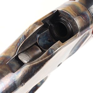 При быстром и сильном открывании затвора гильза извлекалась полностью и падала на землю. После нескольких выстрелов я намеренно стал действовать более мягко. Таким образом, гильза извлекалась, но оставалась в ствольной коробке, откуда я потом мог спокойно ее вытащить. Резиновая накладка на прикладе хорошо справлялась с отдачей, когда я стрелял из Uberti, стоя без опоры. В любом случае отдача у 303-го калибра не сильная.