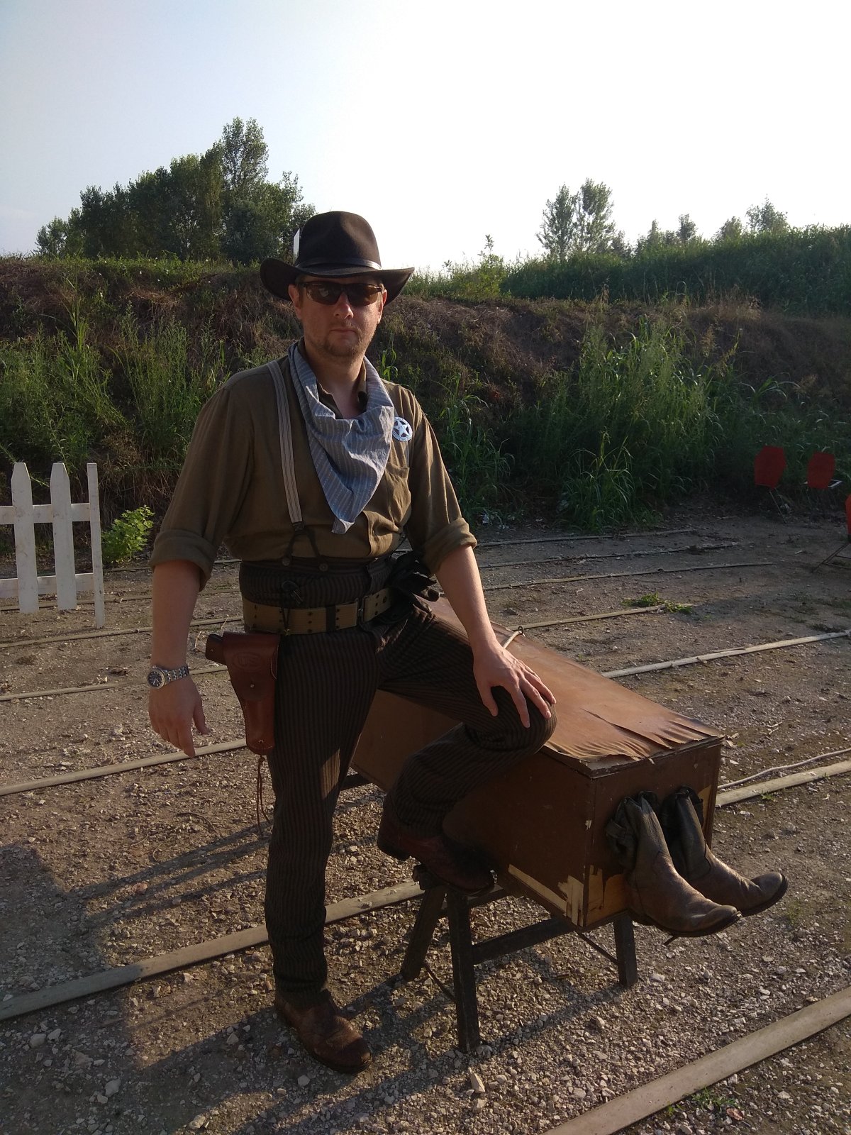 Спали мы в спальных мешках, топили печку. Настоящий Дикий Запад. Причем каждый, кто приезжал на соревнования, сразу должен был облачиться в ковбойский костюм и ходить в нем все три дня соревнований. Конечно, я от всего этого был в диком восторге. Оружие тоже носили все время. И в перерыве на обед я с тяжелыми кольтами на поясе шел обедать в кафе. Одним словом, это были три дня, которые пролетели как сон. Потом уже я дважды ездил чемпионат Чехии, а в августе прошлого года — на чемпионат Европы.