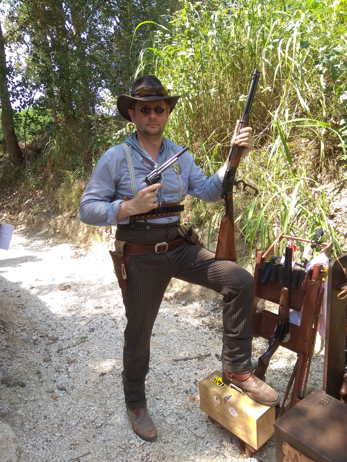 К тому же в тот момент у меня уже появилась возможность иметь ружья и винтовки для ковбойской стрельбы. И я стал более внимательно изучать CAS — cowboy action shooting, то есть главное направление в ковбойской стрельбе. Связи мои по этой теме стали расширяться, и в 2016 году один немец в Facebook пригласил меня на FirstFrozen — зимний чемпионат Германии по ковбойской стрельбе на черном порохе. Я стал собираться в дорогу, но уже буквально накануне вылета наткнулся на объявление о продаже старинного помпового винчестера 1897 года. Такая модель как раз используется для ковбойской стрельбы. И я все деньги спустил на поездку в Тамбов за этим ружьем. Так что в Германию мне удалось попасть лишь через год, и как раз перед поездкой я вступил в Международную ассоциацию ковбойской стрельбы — SASS (Single Action Shooting Society).