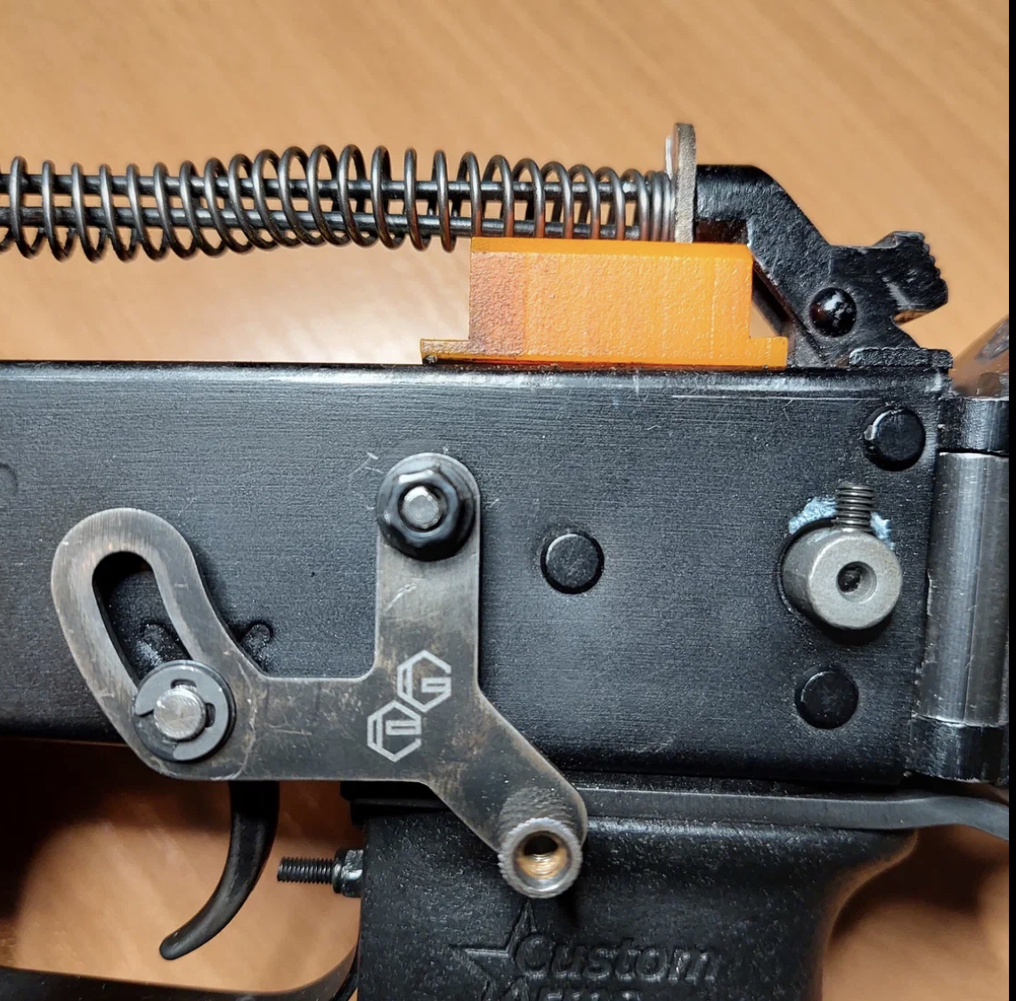 — Ни для кого не секрет, что эргономика оружия на базе автомата Калашникова значительно уступает в удобстве использования и в эргономике оружию на основе AR-систем не только в удобстве вкладки. Например, оперировать предохранителем неудобно даже для «правшей», а уж про «левшей» и говорить нечего. Поэтому я задумался, как приблизить эргономику «калашей» к эргономике AR-карабинов. В результате появилось еще одно техническое решение, на которое получен патент на изобретение. Это предохранители и рычаги сброса как для «левшей», так и для «правшей» по типу AR-систем. Они позволяют оперировать органами управления оружия, не отрывая сильную руку от рукоятки управления огнем.